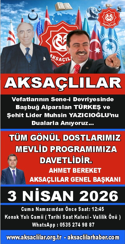 Aksaçlılar Genel Başkanı Ahmet Bereket, Aksaçlılar Genel Merkezi tarafından vefatlarının sene-i devriyeleri münasebetiyle her yıl düzenlenen Başbuğ Alparslan Türkeş ve Şehit Lider Muhsin Yazıcıoğlu için gerçekleştirilen mevlid programına ilişkin açıklamalarda bulundu.