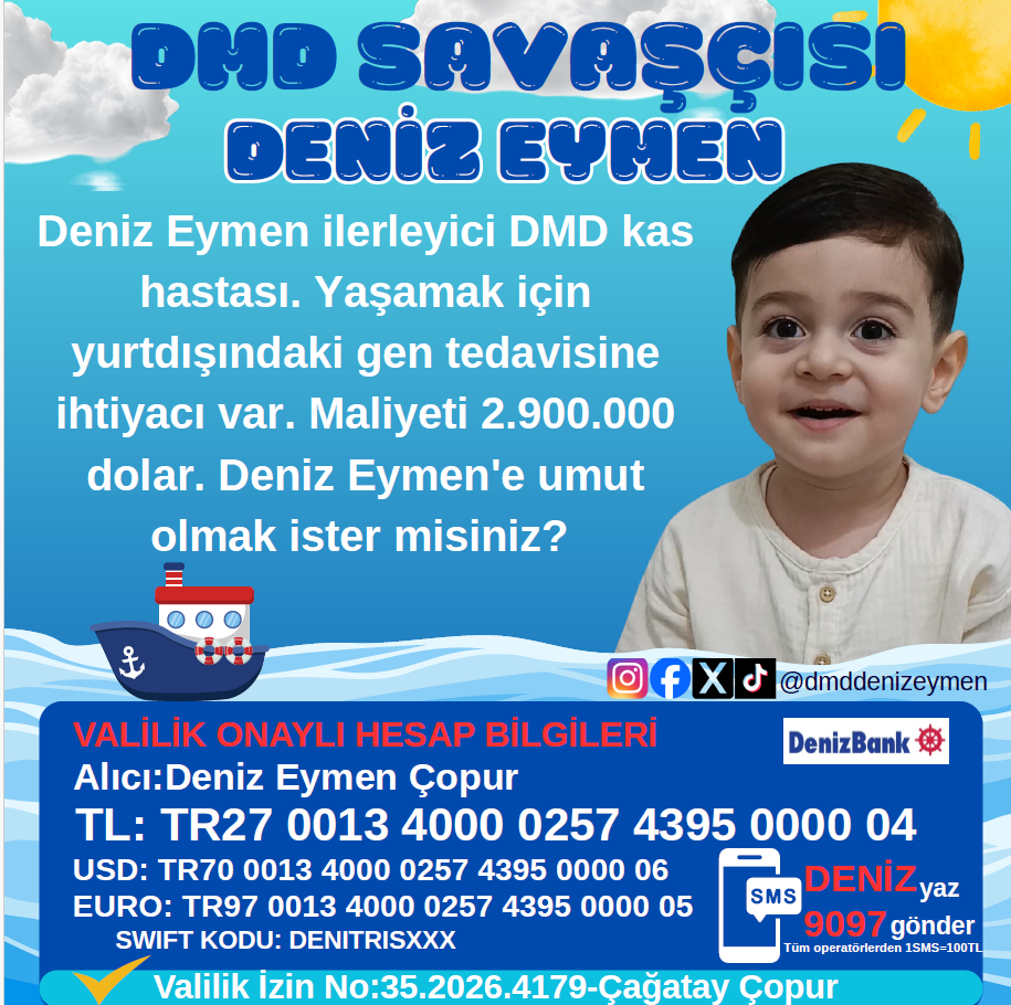 Deniz Eymen’in tedavisi mümkün. Adresi Dubai. İlacın adı Elevidys; tek dozluk bir gen tedavisi. Ancak maliyeti tam 2 milyon 900 bin dolar.